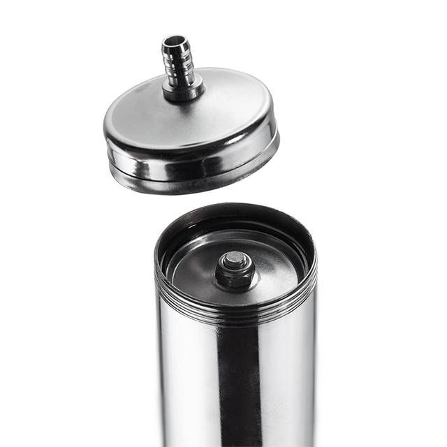 Инструмент полностью изготовлен из стали с толстыми стенками, он прочный и долговечный, оцинкован против коррозии. Благодаря наличию уплотнителя и цельной голове, обеспечивается герметичность конструкции. Поршень с удобным ручным приводом для эффективной работы.