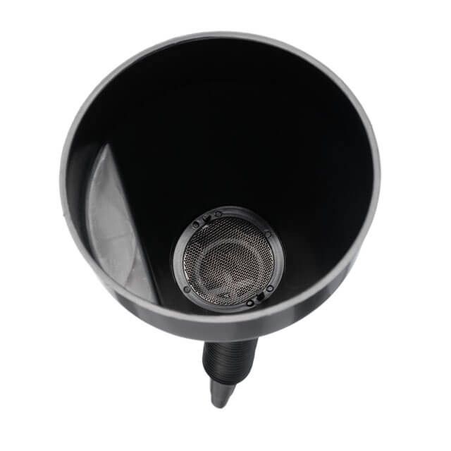 В конструкции лейки предусмотрен фильтр грубой очистки, выполненный в виде сеточки. Он защищает от попадания нежелательных частиц в систему во время заливки. При необходимости, фильтр легко снимается и моется. Благодаря разборной конструкции воронку удобно хранить и перевозить.