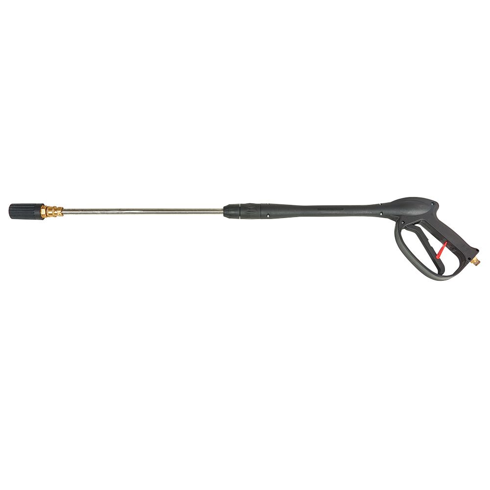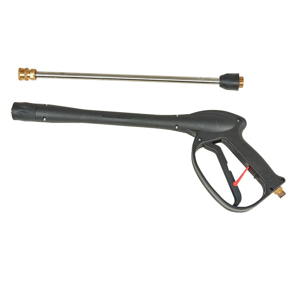 Приводний електродвигун і насос високого тиску об’єднані в блок. Робочий інструмент — кран-пістолет із форсункою — під’єднаний до насоса міцним довгим шлангом.