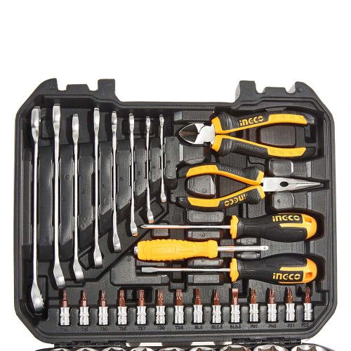 Набір інструменту INGCO призначений для різних робіт в автомайстерні та містить 100 предметів, а саме: