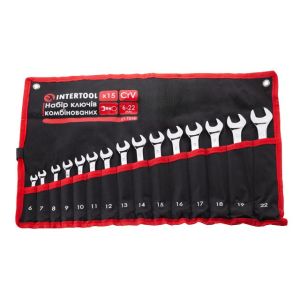 Набор ключей комбинированных 15 ед., 6-22 мм, PROF, чехол INTERTOOL XT-1514
