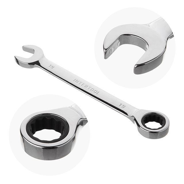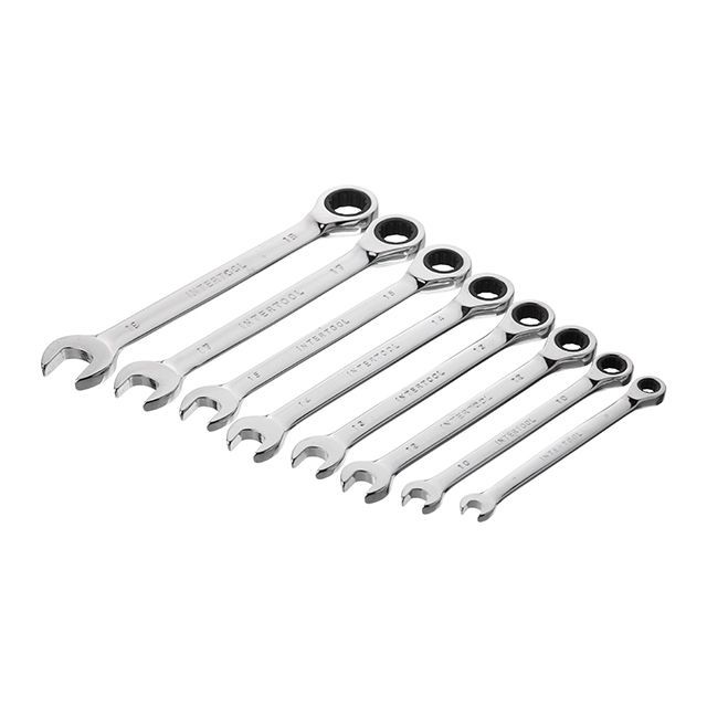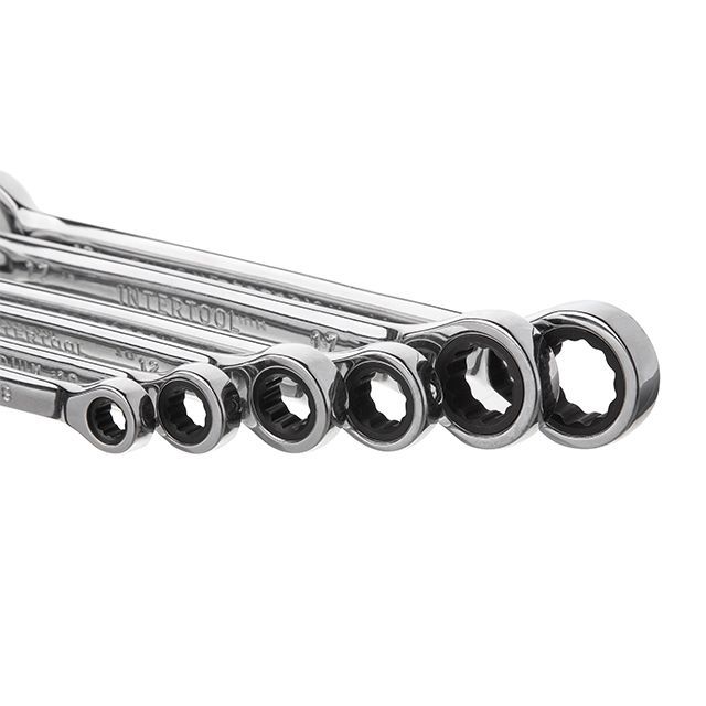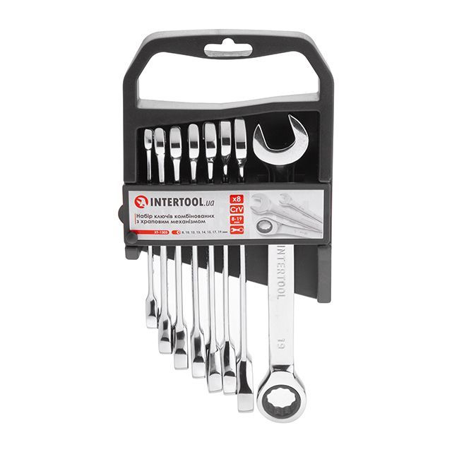 Набор ключей комбинированных с храповым механизмом 8ед., 8-19мм (8-10-12-13-14-15-17-19) Cr-V; PROF DIN3113 INTERTOOL XT-1303