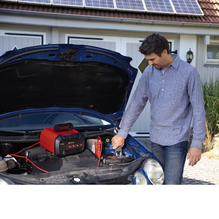 Интеллектуальное зарядное устройство с микропроцессорным контроллером Многоступенчатый цикл зарядки, контролируемый микропроцессором 2в1: зарядка и запуск Функция плавной зарядки для постоянного идеального состояния заряда Универсальное зарядное устройство для различных типов аккумуляторов Для гелевых, AGM, свинцово-кислотных аккумуляторов, не требующих обслуживания Оптимально для сезонных транспортных средств с длительным временем простоя Зарядка обеспечивает продленный срок службы аккумулятора Светодиодный индикатор напряжения аккумулятора и прогресса зарядки Электронная защита от перезарядки, короткого замыкания и неправильных полюсов Полностью изолированные клеммы для аккумулятора Эргономичная ручка для оптимальной транспортировки Важно! Зарядное устройство не может заряжать глубоко разряженные аккумуляторы (аккумуляторы, напряжение на клеммах которых ниже 11.3 В)! Зарядное устройство Einhell CE-BC 15 M – это интеллектуальное зарядное устройство, адаптированное к технически высокоразвитым высокопроизводительным аккумуляторам, имеющимся в современных автомобилях. Интеллектуальный блок, управляемый микропроцессором, подходит для широкого диапазона типов автомобильных аккумуляторов и поставляется с разными техническими механизмами безопасности и обслуживания. Основное внимание при разработке было сосредоточено на быстрой и безопасной зарядке аккумулятора, чтобы добиться самого длительного возможного срока службы с полной производительностью. Управление зарядным устройством проще, чем с обычными устройствами, благодаря подробному дисплею состояния заряда. Это универсальное устройство Einhell подходит для гелевых аккумуляторов, аккумуляторов AGM и необслуживаемых свинцово-кислотных аккумуляторов. CE-BC 15 M подходит для аккумуляторов 12 В. Многоступенчатый цикл зарядки зарядного устройства Einhell автоматически контролируется и регулируется под контроллером процессора. Электроника интеллектуального управления анализирует тип и состояние подключенного аккумулятора и запускает наиболее подходящий режим зарядки в соответствии с потребностями. Функция капельной зарядки защищает и сохраняет батарею для оптимального уровня заряда. Это делает CE-BC 15 M пригодным для всех типов транспортных средств, особенно для сезонных транспортных средств с длительным временем простоя. Вместо того, чтобы аккумулятор позволял полностью разряжаться и рисковать полным разрядом, заряд аккумулятора поддерживается до оптимального уровня с помощью капельной зарядки. Капельный заряд разгружает элементы аккумулятора и продлевает срок службы, предотвращая дорогостоящую замену неисправного аккумулятора автомобиля, которой можно избежать. Автомобили, мотоциклы и скутеры готовы к использованию в начале сезона. Зарядное устройство Einhell может обеспечить запуск аккумулятора с помощью быстрого старта, обеспечивая пусковой ток 100 А (максимум 5 секунд). После кратковременного заряда конденсатора зарядное устройство может обеспечить быстрый старт, чтобы мгновенно активизировать двигатель автомобиля. Зарядное устройство Einhell оснащено автоматической защитой от перезаряда, короткого замыкания и обратной полярности. Эти защитные механизмы защищают не только зарядное устройство, но и аккумулятор. Светодиодный дисплей напряжени