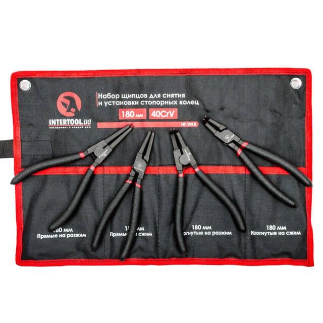 Набор щипцов для снятия и установки стопорных колец 180 мм, 40 CrV, фосфатированные, 4 ед. INTERTOOL HT-7015