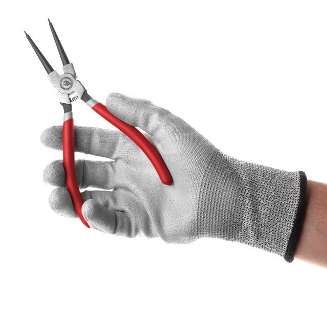 Прямые щипцы на сжим, длиной 180 мм – незаменимый инструмент, когда необходима аккуратная, быстрая установка или снятие стопорных колец.