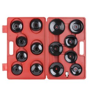 Каждый инструмент размещается в компактном пластиковом кейсе с удобной ручкой и замками. Набор для масляных фильтров из 14 предметов всегда находится в одном месте, и вы не тратите много времени на поиск подходящего размера съемника масляного фильтра.