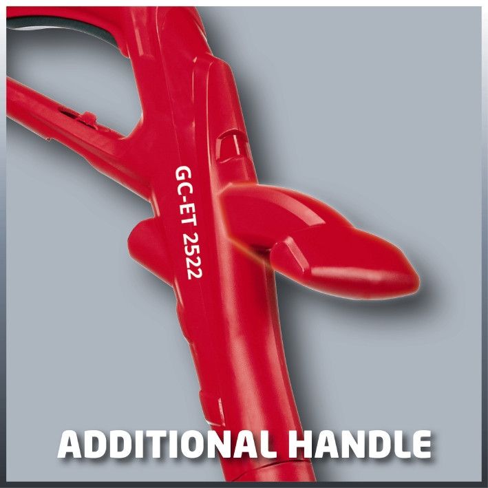 Электрический триммер Einhell GC-ET 2522 является инструментом, который поможет сохранить Ваш газон в безупречном виде, без труда подрезать траву в труднодоступных местах сада. Этот триммер оснащен качественным универсальным двигателем мощностью 250 Вт. Дополнительная рукоятка позволяет пользователю удобно работать двумя руками и комфортно выполнять работу без усталости. Корпус и дополнительная рукоятка изготовлены из ударопрочного пластика высокого качества. Автоматическая система подачи лески позволяет выполнить чистый срез газона. Кабельный зажим для крепления кабеля позволяет снять с него натяжение и защищает питающий кабель.