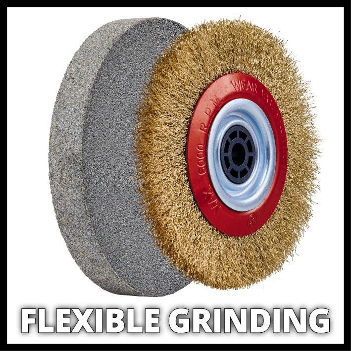 Точильно-шлифовальный станок Einhell TC-BG 150 B является идеальным помощником для грубой и тонкой шлифовки и коррекции формы. Благодаря мощному двигателю 350 Вт он шлифует всевозможные материалы. Станок также идеально подходит для полировки и заточки, а благодаря щеточному диску для удаления ржавчины из металлов, удаления краски и чистки файлов, например. Большие рабочие подставки регулируются и идеально адаптируются к соответствующему заданию. Шарикоподшипниковый вал не люфтит и обеспечивает точную работу. Безопасность обеспечивается закрытыми по бокам защитными кожухами. Благодаря четырем прорезиненным ножкам точило имеет безопасное положение с низким уровнем вибрации. Искрозащитные экраны можно легко настроить без инструментов. Прочная металлическая компактная конструкция обеспечивает длительный срок службы. Шлифовальная машина оснащена диском грубой шлифовки (К36) и щеточным диском. Это позволяет не только вносить значительные поправки формы, но и производить новые шлифовальные работы.