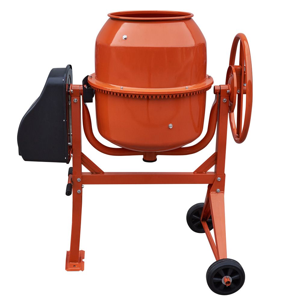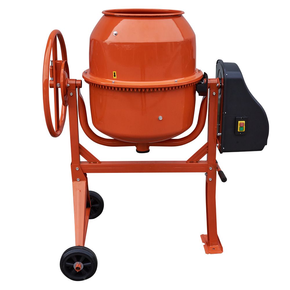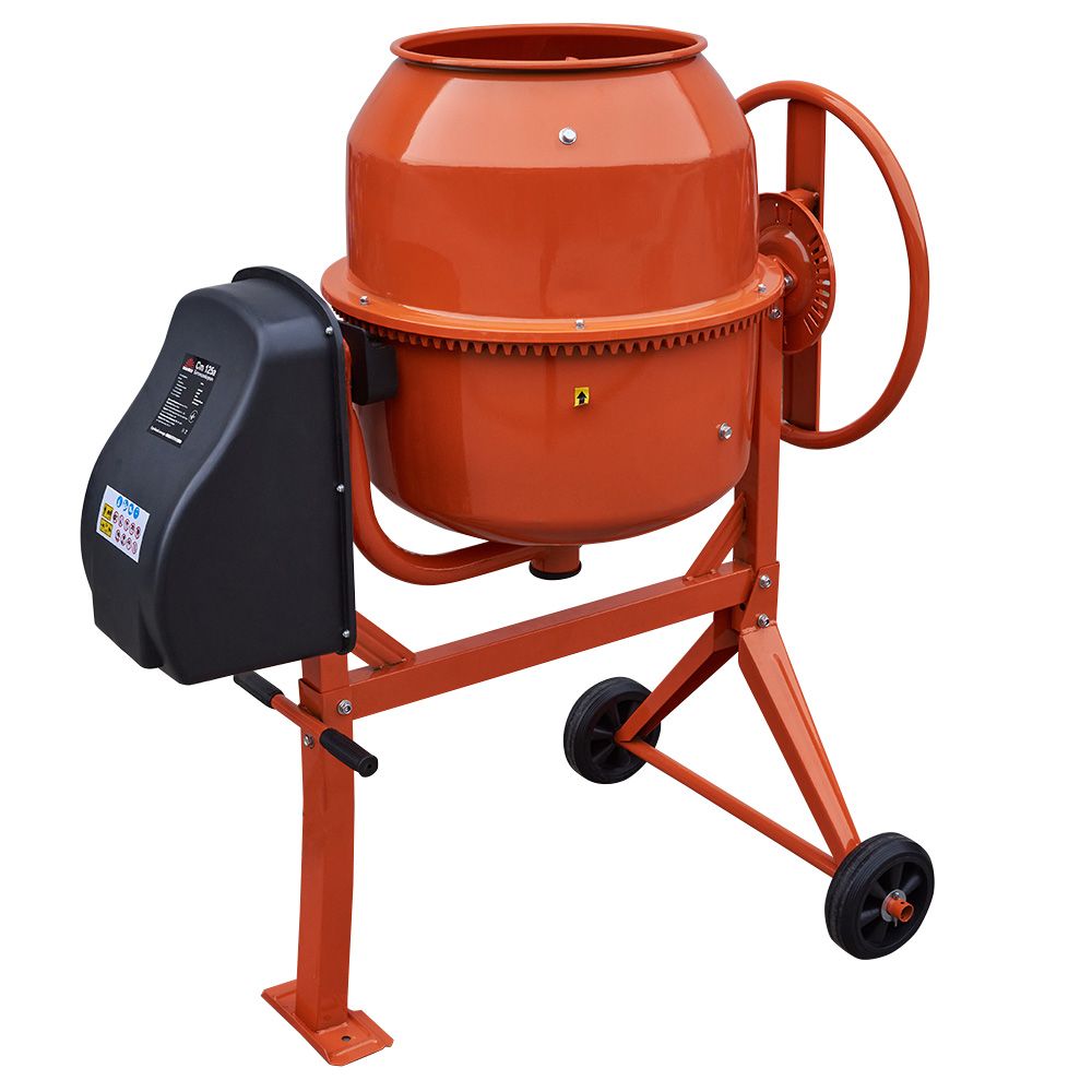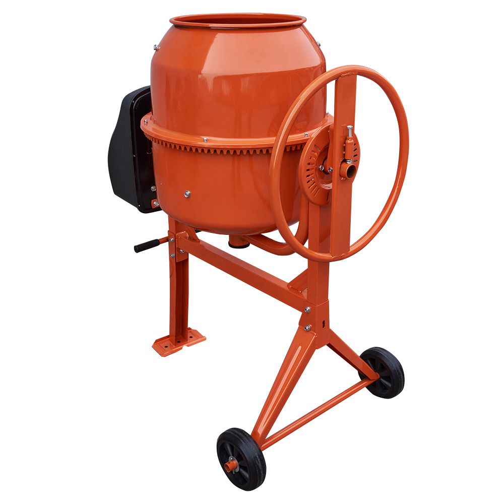 Електродвигун потужністю 550 Вт працює від звичайної мережі 220 В і гарантує стабільну продуктивність навіть за інтенсивного використання. Міцна рама та стійка конструкція дозволяють витримувати навантаження та забезпечують довгий термін служби обладнання. Незважаючи на масу 44 кг, бетонозмішувач зручний у транспортуванні та монтажі.