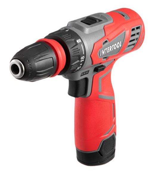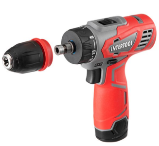 Дрель-шуруповерт аккумуляторная 12 В, 30 Nm, 0-350/0-1300 об/мин, 0.8-10 мм, литий-ион, 1.5 Ач, съемный патрон INTERTOOL DT-0314