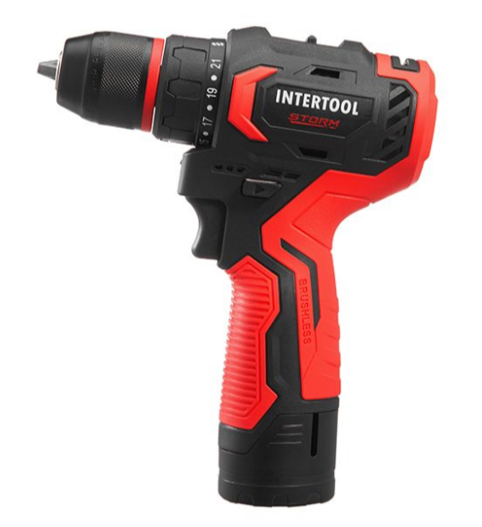 Дриль-шуруповерт акумуляторний, безщітковий двигун, 12 В, 50 Nm, 0-500/0-1900 об/хв, патрон 0,8-10 мм, 2x2,0 Ач INTERTOOL WT-0322
