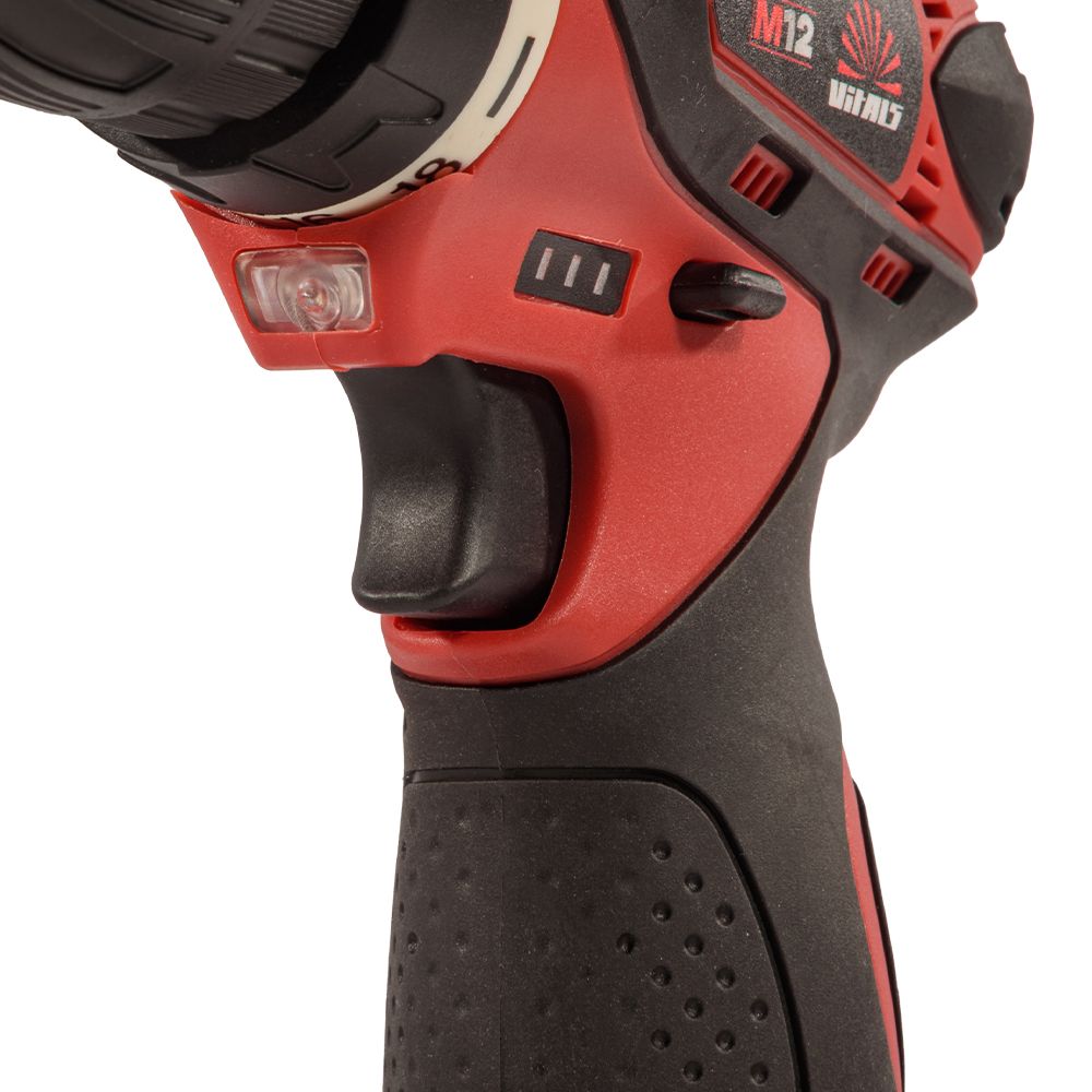 Дриль-шурупокрут акумуляторний ТМ «VITALS» AU 1221c — надійний і безпечний інструмент для закручування та відкручування кріплень, а також свердління отворів діаметром 0,8–10 мм. Має два режими швидкості, реверс, LED-підсвічування робочої зони та швидкозатискний патрон для зручності роботи. Ергономічний корпус із ударостійкого пластику забезпечує захист і комфорт. Працює від Li-ion акумулятора лінійки «М12» (не входить до комплекту).