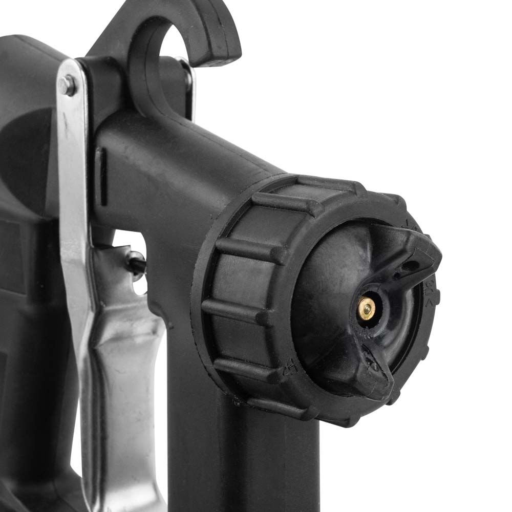 Фарбопульт Procraft PSE950 - електричний інструмент, який призначений для нанесення емалевої і лесуючої фарби, грунтовки, лаку, захисних шарів, грунтовок і просочень на водній і масляній основі. Розпилення здійснюється під дією стисненого повітря. Переваги фарбопульта Модель обладнана потужним компресом на 600 Вт, що забезпечує стабільну форму факела розпилення, що дозволяє досягти відмінних результатів фарбування. Обсяг бачка становить 0,8 л. Для настройки кількості розпилення рідини є регулятор. Особливості обладнання: Має металевий бачок, стійкий до корозії. У комплекті міститься 3 професійних сопла з латуні. Встановлена поліпшена система охолодження. Фарба розпилюється під оптимізованим високим тиском, завдяки чому досягається найтонший фінішний шар покриття. Загальні відомості про використання Фарбопульт Procraft PSE950 відноситься до пристроїв побутового застосування. Стабільно працює при температурі навколишнього середовища від -10 С до +40 С і вологості повітря в межах 80%. Для більш зручної роботи в комплекті є спеціальний плечовий ремінь, який можна швидко закріпити або прибрати.