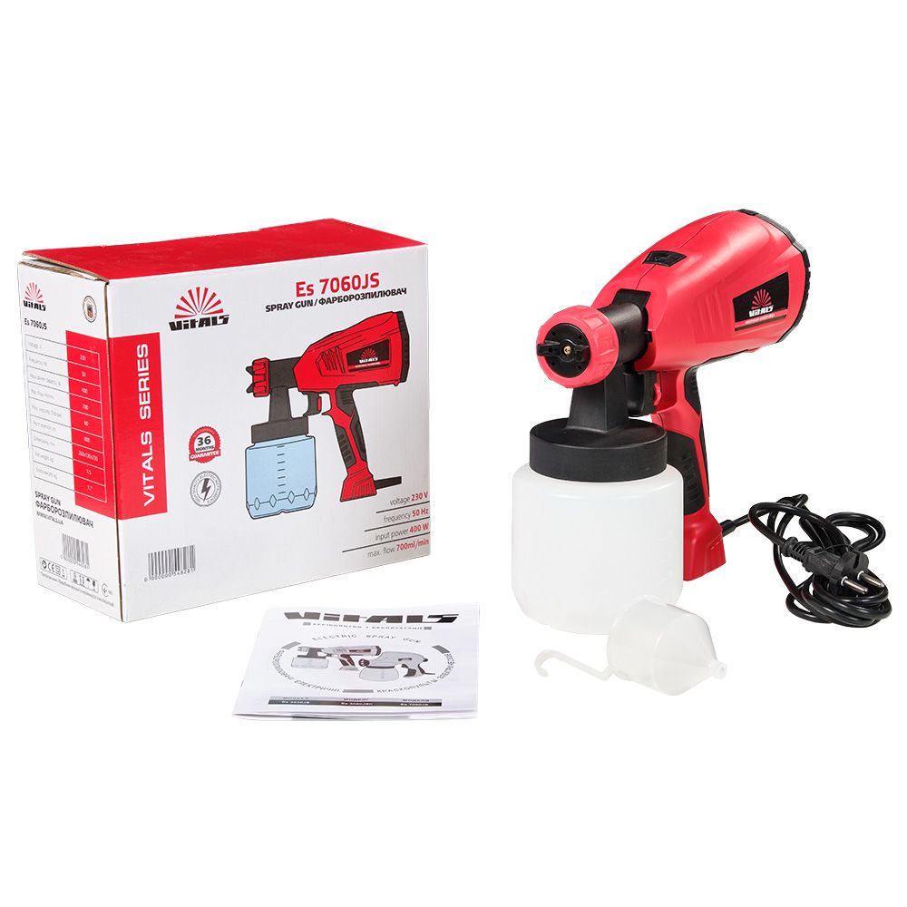 Фарбопульт електричний Vitals Es 7060JS спроектований з дотриманням усіх вимог безпеки та надійні в експлуатації. Розпилювач призначений для нанесення фарби, лаку та інших розчинних матеріалів у відповідній в'язкості на різні поверхні.