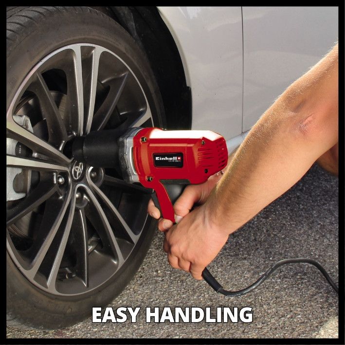 Электрический ударный гайковерт для снятия колес Двигатель мощностью 950 Вт Кулисный переключатель для быстрого изменения направления вращения Мягкие накладки на ручке для удобной работы и надежного хвата Ударный механизм в прочном корпусе выдерживает большие нагрузки В комплекте 4 торцевые головки (17, 19, 21 і 22 мм) Поставляется в картонной коробке Электрический ударный гайковерт Einhell CC-IW 950 является универсальным помощником для замены колес без особого труда и в кратчайшие сроки. Удобная работа и безопасный захват гайковерта обеспечивается мягкой накладкой в местах захвата. Кроме того, кулисный переключатель позволяет быстро изменить направление вращения. Прочный корпус, двигатель мощностью 950 Вт и крутящий момент 450 Нм, позволяет выполнять широкий спектр сложных задач. Гайковерт для автомобилей поставляется в комплекте с четырьмя торцевыми головками (17, 19, 21 и 22 мм) в картонной коробке.