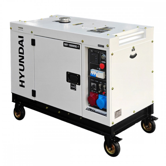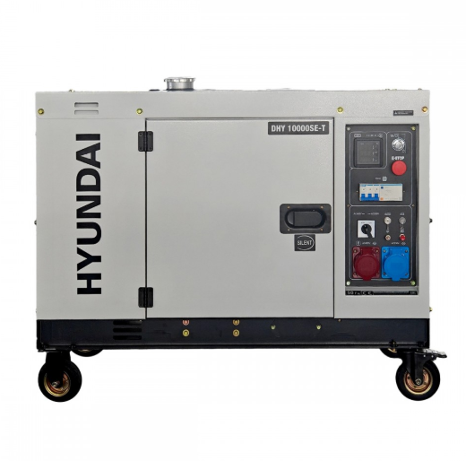 Дизельний генератор Hyundai DHY 10000SE‑T — потужний, універсальний дизельний генератор з можливістю роботи як на 230 В (монофазно), так і на 400 В (трифазно) без втрати потужності, призначений для забезпечення електропостачання побутових і промислових об’єктів, будівельних майданчиків, майстерень, насосів, компресорів, систем освітлення та іншого обладнання