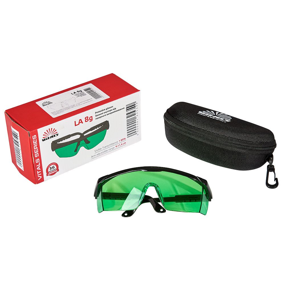 Використовуються для захисту органів зору за безпосереднього потрапляння лазерного променя в очі. Також підвищує видимість лазерного променя. Постачається у твердому чохлі та має регульовані дужки для зручності користувача.