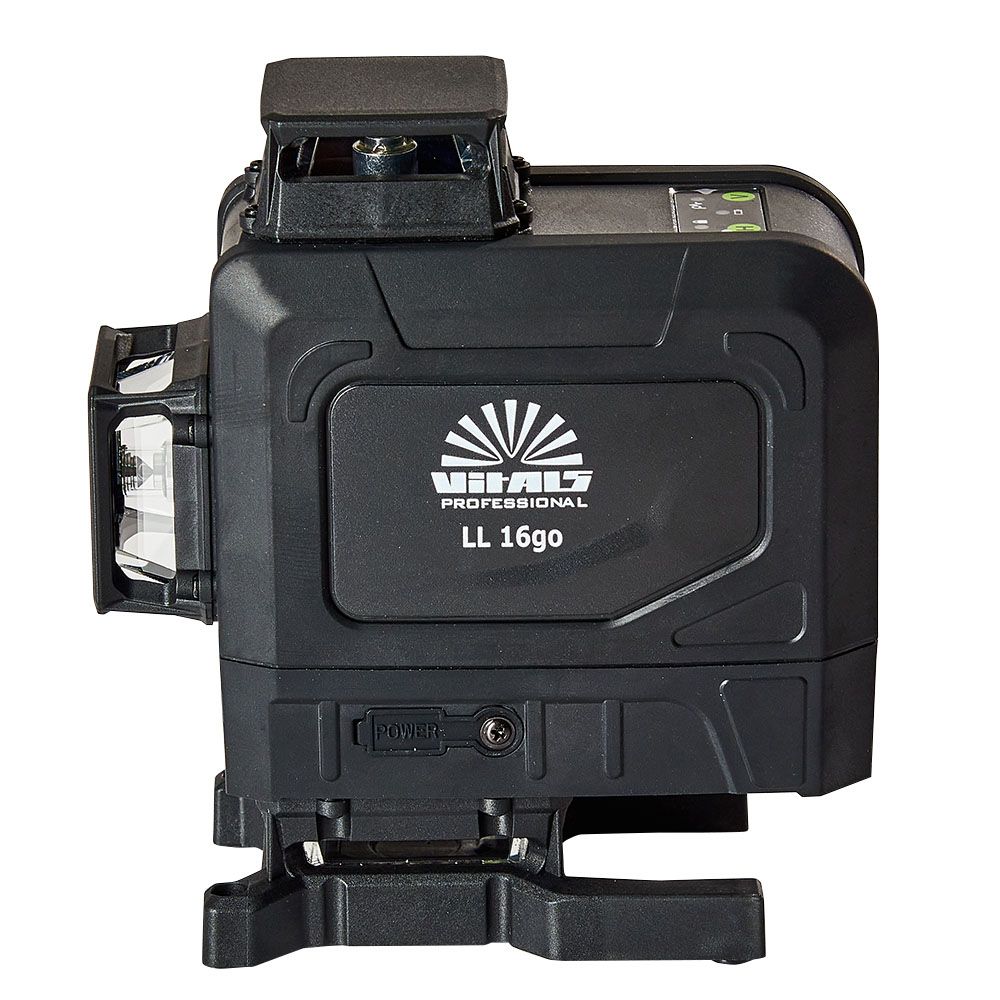 Рівень лазерний Vitals Professional LL 16go являє собою професійний лазерний рівень для побудови горизонтальних і вертикальних ліній. Ця модель проєктує дві горизонталі 360° та дві вертикалі 360°. Оскільки в моделі є нижня призма, її можна використовувати для роботи з плиткою та іншими підлоговими покриттями. Під час виробництва нівеліра використовується високоякісний діод торгової марки «Osram», який виробляється в Німеччині.