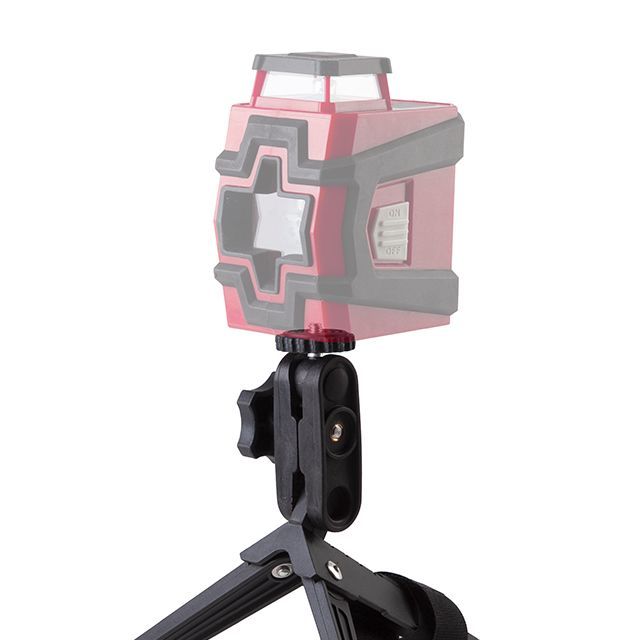 Высота треноги регулируется до 250 мм, и выполняет роль подставки, в случае, когда необходимо закрепить лазерный уровень или другую технику на определенной высоте. Изготовлен держатель из легкого, но в то же время прочного материала, обеспечивает комфортную работу и транспортировку. Имеет противоскользящие ножки для лучшей устойчивости на любого типа поверхностях.