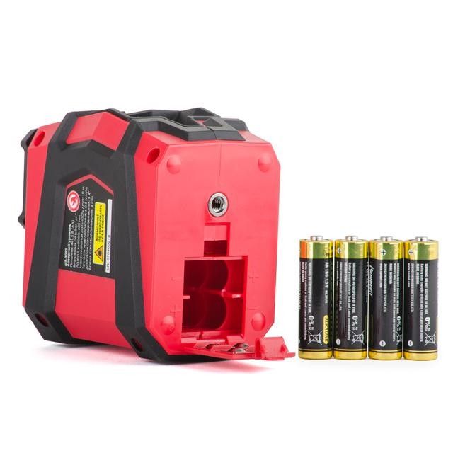 Уровень компактный и легкий, помещен в прочный двухкомпонентный корпус с вставками из плотной резины, который защищает от механических повреждений. Питание осуществляется от двух батареек стандартного типа АА. Малый вес и компактные габариты позволяют без проблем транспортировать уровень.