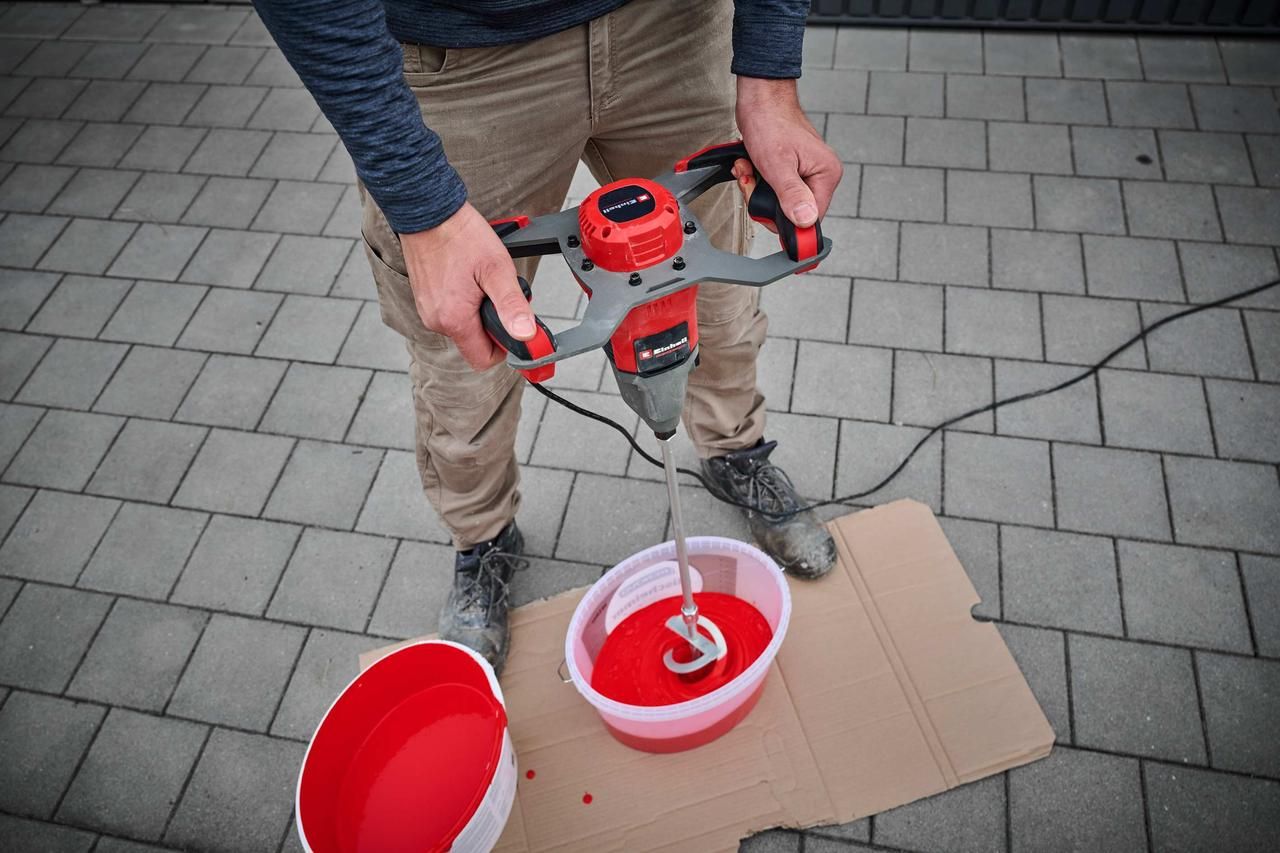 Профессиональный миксер для краски/раствора Einhell TP-MX 1700-2 CE – это мощный строительный миксер мощностью 1700 Вт для мастеров, предназначенный для смешивания жидких и порошкообразных строительных материалов, таких как краски, штукатурка, бетон, раствор или гипс. 2-скоростной редуктор, расположенный в крепком и долговечном алюминиевом корпусе, обеспечивает скорость вращения до 750 об/мин для высокой производительности смешивания. С помощью электроники регулировки скорости скорость перемешивания можно оптимально отрегулировать в соответствии с консистенцией смеси. Мешалка запускается плавно, используя технологию плавного пуска, так что работу можно начать без разбрызгивания. Большая эргономичная рукоятка с мягкой накладкой означает, что миксер для раствора всегда идеально лежит в руке. Оптимизированный по длине миксер для краски/раствора можно использовать для работы в вертикальном положении, удобном для спины. Все обычные инструменты для перемешивания могут работать с резьбой M14 на крепком креплении мешалки. В комплект поставки входит мешалка диаметром 120 мм и два рожковых ключа для легкой замены мешалок.
