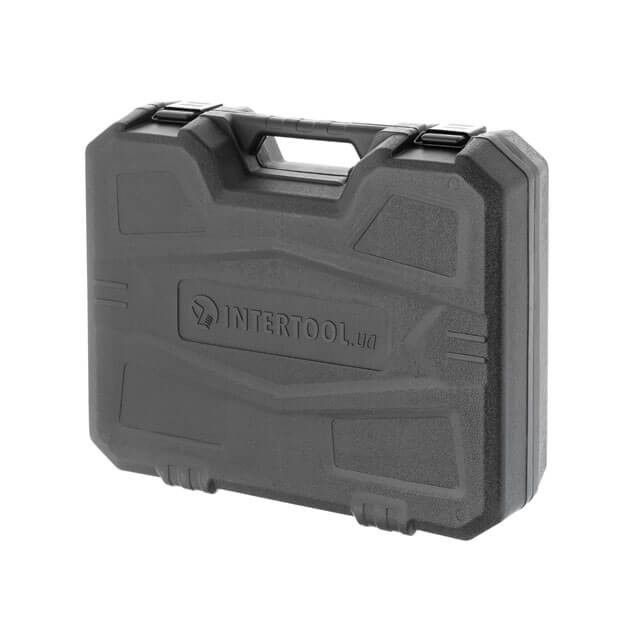 Перфоратор и все комплектующие упакованы в надежный кейс с металлическими замками с удобной ручкой для транспортировки и хранения.