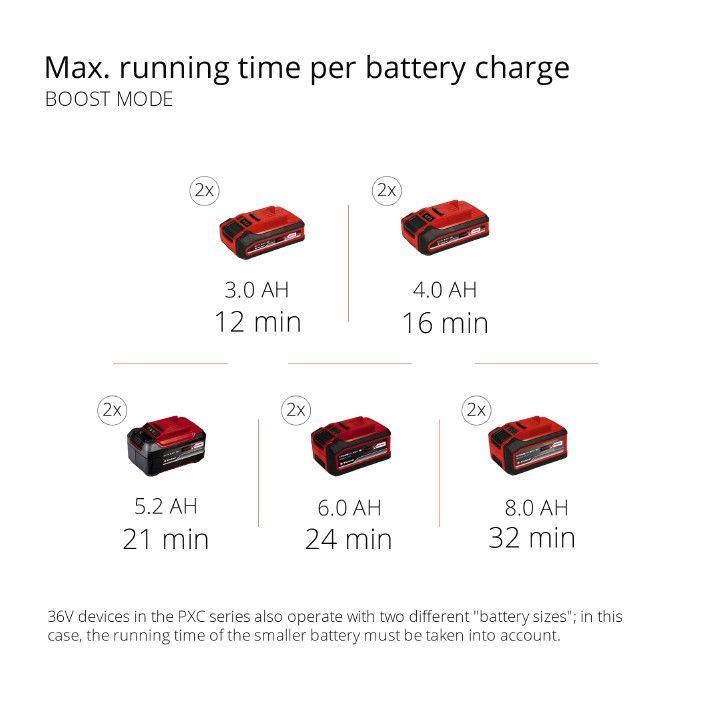 - Рекомендація для найкращих результатів - акумулятор 3,0 Ah і вище