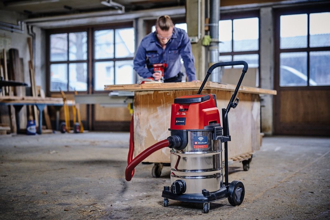 Акумуляторний миючий пилосос з автоматичним запуском Einhell TP-VC 36/30 S Auto-Solo - це революційне рішення для професійного сухого та вологого прибирання з інноваційною технологією AUTO CONNECT. Завдяки функції connectivity пилосос автоматично включається при роботі з акумуляторними інструментами, забезпечуючи чисте робоче місце без додаткових зусиль. Ідеально підходить для професійних майстерень, будівельних майданчиків та промислового використання.