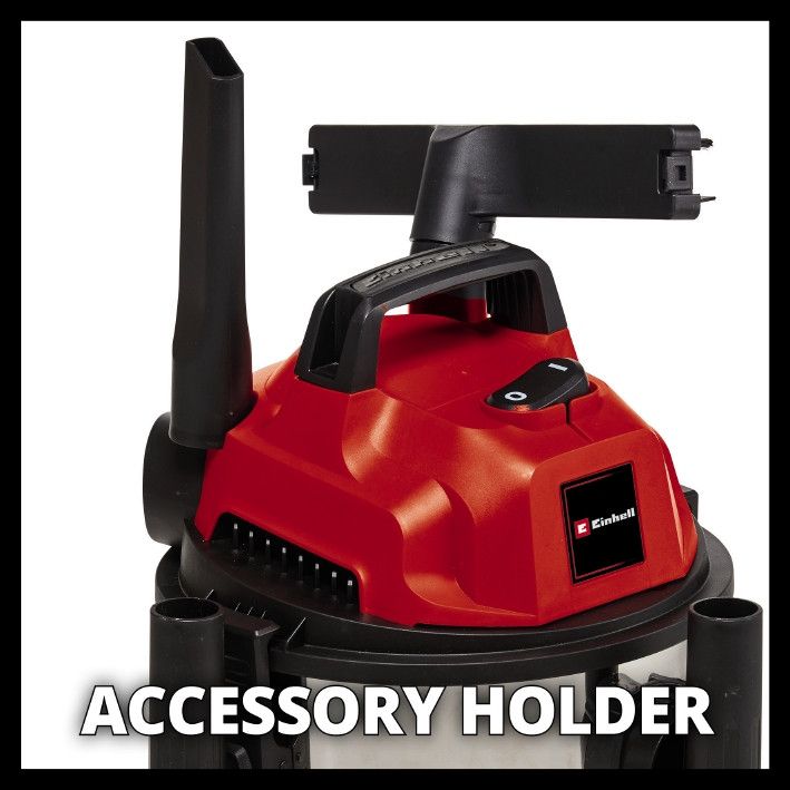 Пылесос Einhell TC-VC 1820 S представляет собой высококачественный универсальный многоцелевой пылесос. Вы можете использовать его для сухой и влажной уборки (засасывание жидкости). Его бак из легко очищаемой нержавеющей стали имеет емкость 20 литров и в него можно собирать крупную или мелкую, влажную или сухую грязь и даже жидкости. Двигатель мощностью 1250 Вт обеспечивает не только хороший уровень мощности всасывания, но и достаточное давление для воздуходува. Вы можете очистить Ваши дорожки в саду от посторонних предметов, подсоединив шланг к отверстию воздуходува и сдувая их в сторону. TC-VC 1820 S поставляется со всасывающим шлангом диаметром 36 мм, пластиковой всасывающей трубкой из трех частей, большой комбинированной универсальной насадкой со вставкой для ковров и гладких напольных покрытий и щелевой насадкой. Бумажный мешок для грязи хорошо подходит для всасывания мелкой пыли. Поролоновый фильтр предохраняет двигатель от загрязнения во время влажной уборки. Поплавковый выключатель автоматически отключает всасывание жидкости при достижении максимального уровня в баке. Держатель для аксессуаров на корпусе пылесоса позволяет аккуратно хранить аксессуары. Для удобства переноски и транспортировки пылесос имеет встроенную ручку и четыре небольших ролика.