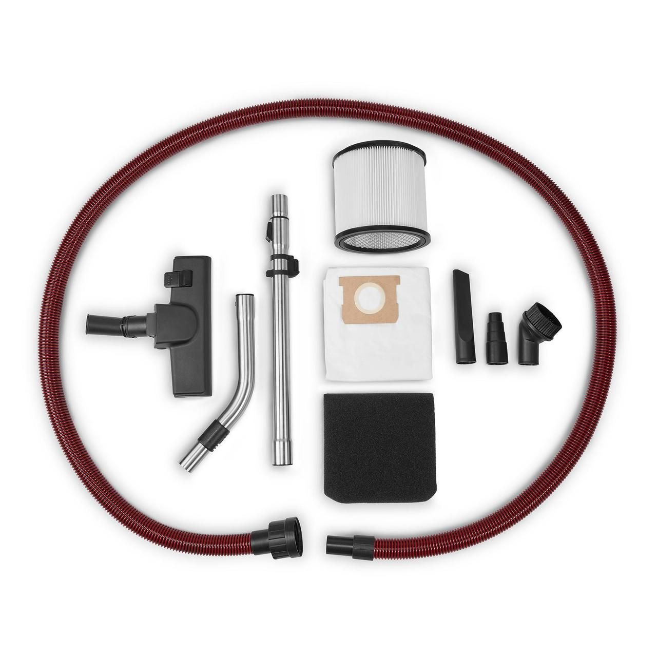 Пыль, жидкость или грязь дома или на строительной площадке: пылесос для влажной/сухой уборки Einhell TE-VC 3080 SACL тщательно очищает все материалы благодаря силе всасывания 220 мбар и потреблению энергии 1150 Вт. Оснащенный комбинированной насадкой с роликами для ковров и твердых полов, насадкой для обивки автомобильных сидений и других обивочных материалов, а также щелевой насадкой для труднодоступных углов этот пылесос справится с чем-либо. Узкие углубления можно легко очистить выдувом с помощью функции выдувания. В комплект также входят поролоновый фильтр для влажной уборки и эффективный гофрированный HEPA-фильтр, а также крепкий, устойчивый к разрывам синтетический мешок для сухой уборки. HEPA-фильтр отфильтровывает даже самые мелкие частицы из воздуха и особенно подходит для аллергиков. Пылесос также соответствует классу защиты от пыли L согласно Euronorm и поэтому может использоваться для сухой уборки опасной пыли, такой как штукатурная пыль, известь, песок и грунт. Пылесос также идеально подходит для использования на строительных площадках. Инновационная система очистки фильтра очищает его одним нажатием кнопки после длительной работы или сильного опыления и восстанавливает максимальную мощность всасывания. Электрические устройства, такие как фрезерные машины для стен или шлифмашины для гипсокартона, можно удобно подключить к автоматической розетке (макс. мощность 2000 Вт), благодаря чему пылесос также включается и выключается одновременно с подключенным электроинструментом, сохраняя в чистоте рабочее место. Бак из нержавеющей стали содержит до 30 литров грязи и жидкости, а встроенная сливная пробка для воды позволяет легко сливать впитанную воду. Благодаря колесам, роликам и ручке тележки пылесос можно легко транспортировать к месту применения. Сверхпрочный пластиковый всасывающий шланг длиной 3 метра диаметром 36 мм и питающий кабель длиной 5 метров обеспечивают радиус действия 8 метров. Благодаря держателю для аксессуаров и хранилищу для кабеля пылесос и аксессуары не только быстро и чисто хранятся, но и готовы к повторному использованию.