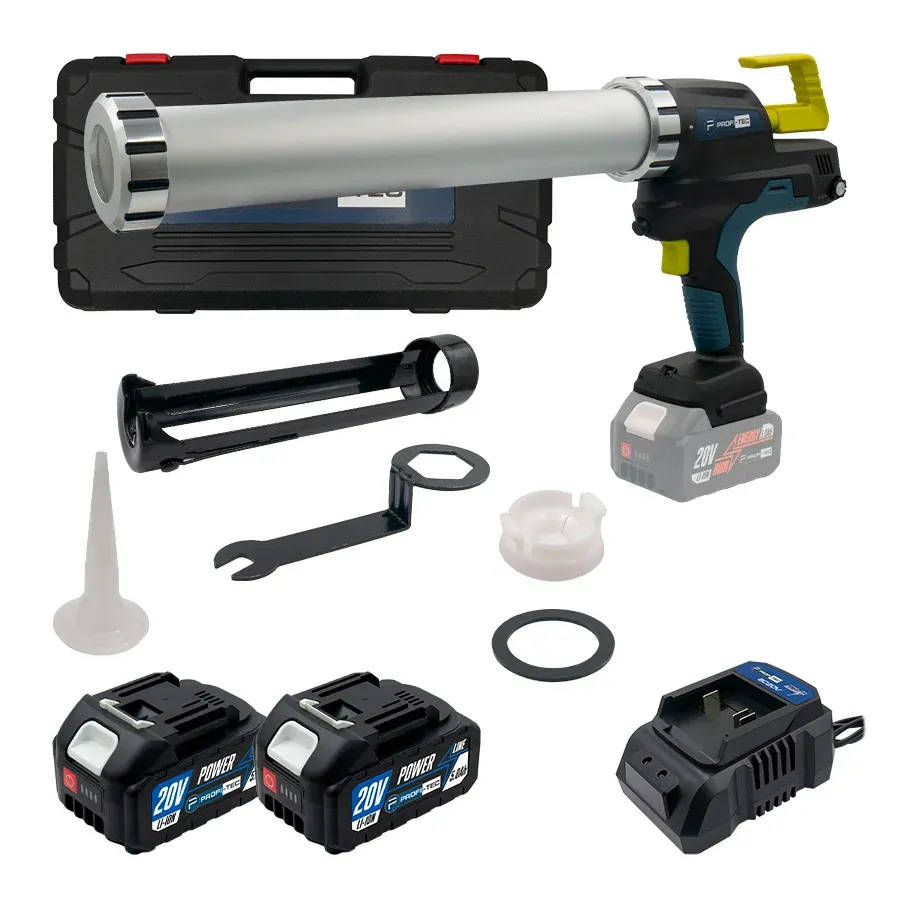Акумуляторний пістолет-шприц для герметиків PROFI-TEC PCG20BL – високоякісний інструмент, призначений для зручного та ефективного нанесення герметиків та клеїв та використовувається для ущільнення стиків та щілин у будівельних конструкціях, а також для герметизації вікон та дверей.