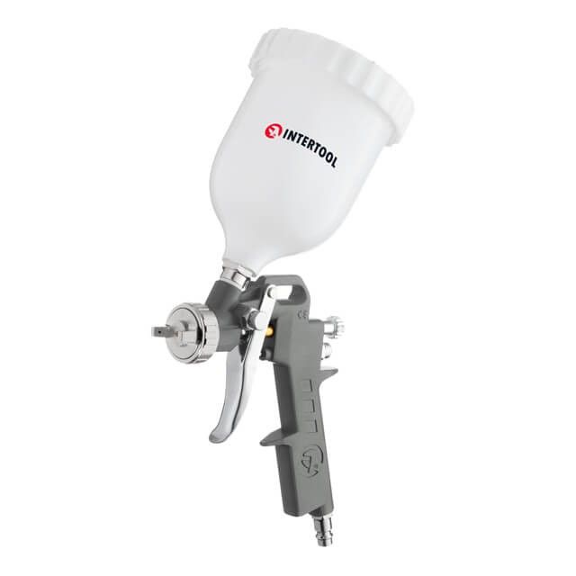 Краскопульт пневматический HP, форсунка 1,5 мм, верхний пластиковый бачок 600 мл, 5 бар INTERTOOL PT-0204