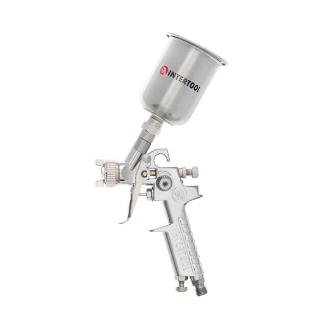 Краскопульт пневматический HP MINI, форсунка 0.5мм, верхний металлический бачок 125мл., 5бар INTERTOOL PT-0306