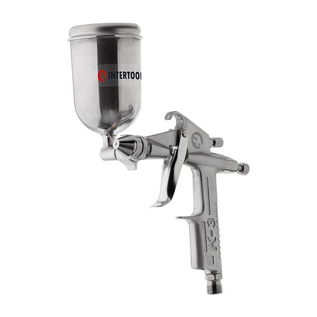 Краскопульт пневматический HP MINI, форсунка 0,5 мм, верхний металлический бачок 200 мл, 5 бар INTERTOOL PT-0303