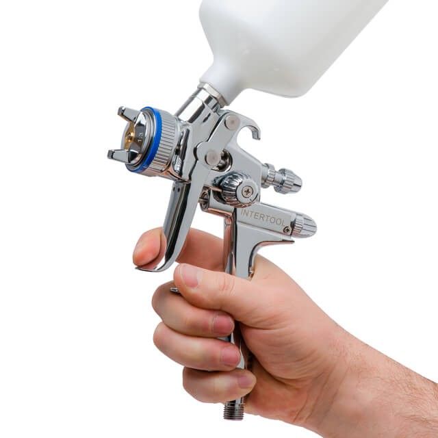 Имеет идеальную посадку в руке, не перегружает запястье и руку, в результате можно без проблем работать на протяжении длительного времени. Краскопульт отлично сбалансирован для идеального контроля над рабочим процессом.