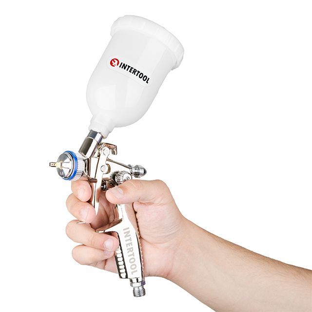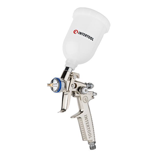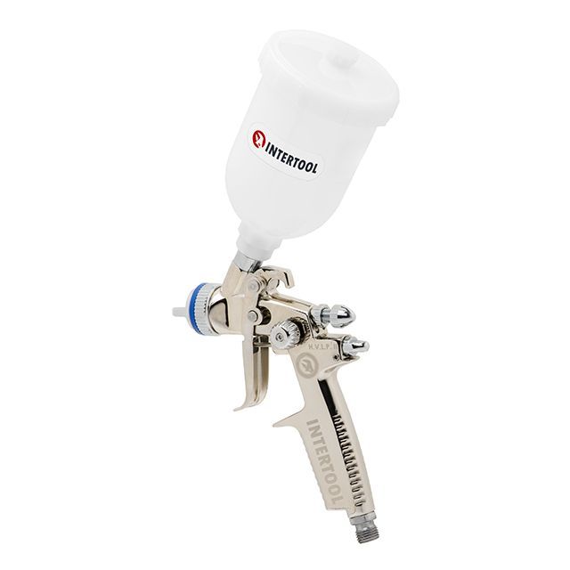 Краскопульт пневматический HVLP II MINI профессиональный, форсунка 0,8 мм, верхний пластиковый бачок 250 мл, 2-2,5 бар INTERTOOL PT-0128