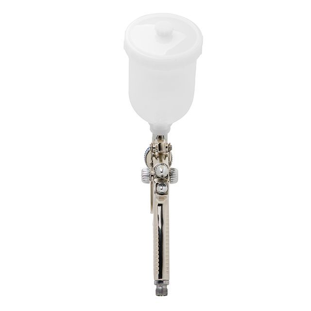 Оснащен пластиковым бачком ёмкостью 250 мл, благодаря чему есть возможность визуально контролировать уровень краски, что очень удобно.