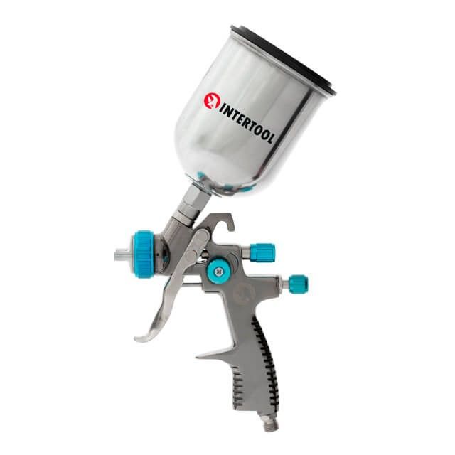 Краскопульт пневматический LVLP BLUE профессиональный, форсунка 1,4 мм, верхний металлический бачок 600 мл, 1,5 бар INTERTOOL PT-0133