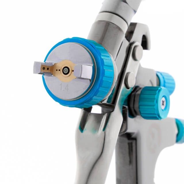 Также вы можете заменить размер дюзы на другой, что позволяет работать одним покрасочным пистолетом с материалами различной вязкости или же поставить новый аналогичный комплект форсунки, что продлит срок службы вашего краскопульта. К покрасочному пистолету предусмотрены сменные комплекты с диаметром дюзы: 1.3, 1.4, 1.8 мм, их артикулы: РТ-2013, РТ-2014, РТ-2018, они приобретаются отдельно.