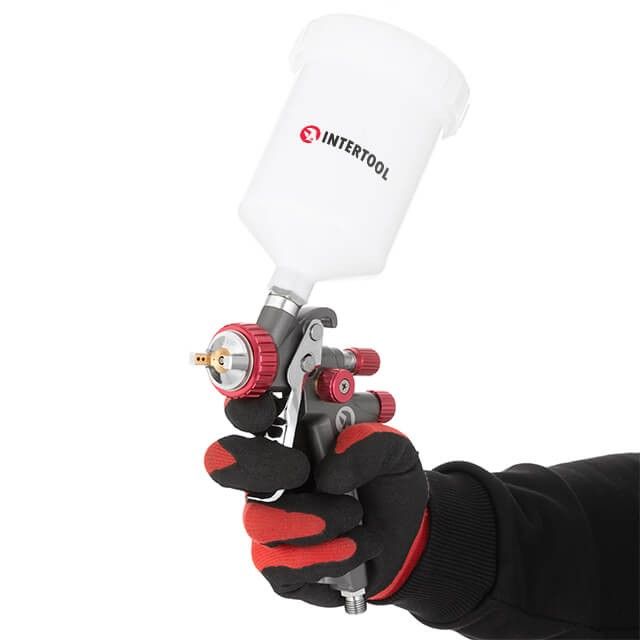 Краскопульт пневматический LVLP TEFLON профессиональный, форсунка 1.3мм, верхний пластиковый бачок 600мл., 1.5бар, STORM INTERTOOL PT-0143