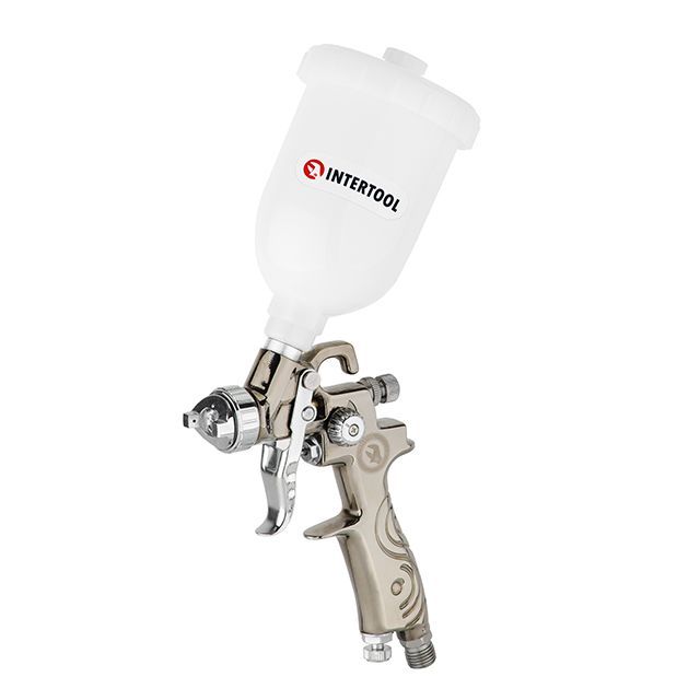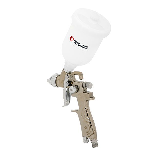 Краскопульт пневматический LVMP MINI форсунка 0,8 мм, верхний пластиковый бачок 250 мл, 2-2,5 бар INTERTOOL PT-0129