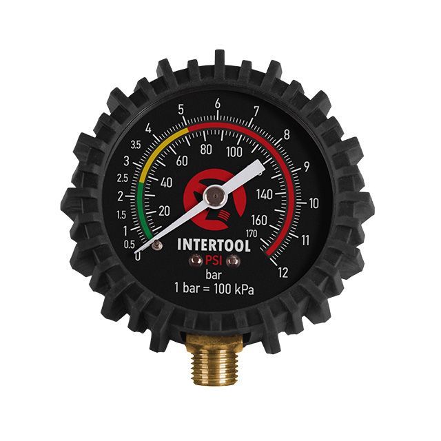 Манометр к пистолету для подкачки с резиновым покрытием, диаметр 63мм, 1/8" INTERTOOL PT-0499