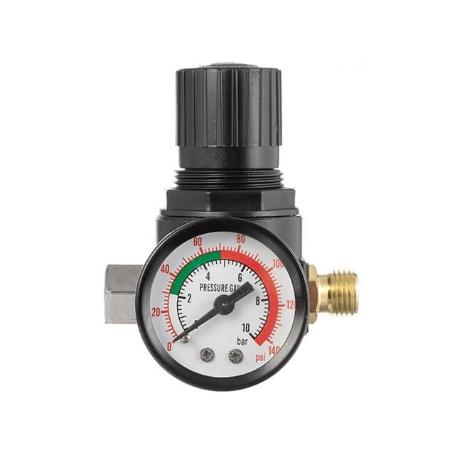 В комплект также входит съемный регулятор давления, который обеспечит понижение, контроль и фиксацию входящего давления. Его можно использовать с любым пистолетом из набора.