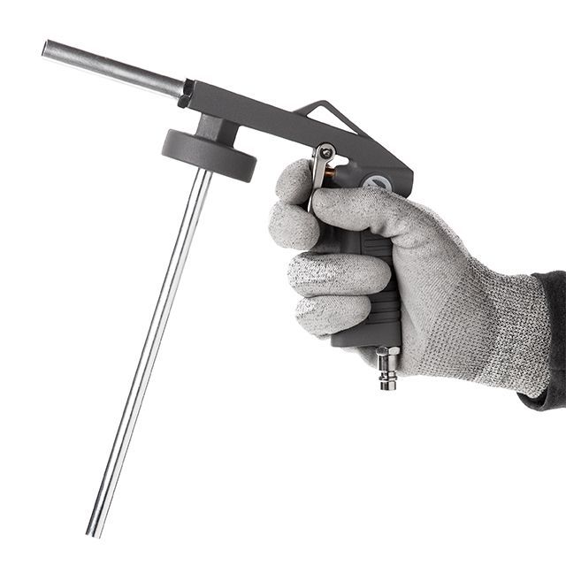 Литой корпус из металла прочный и легкий, не перегружает руку на протяжении длительной работы. Удлиненное сопло износостойкие, позволяет дотянутся до труднодоступных мест.