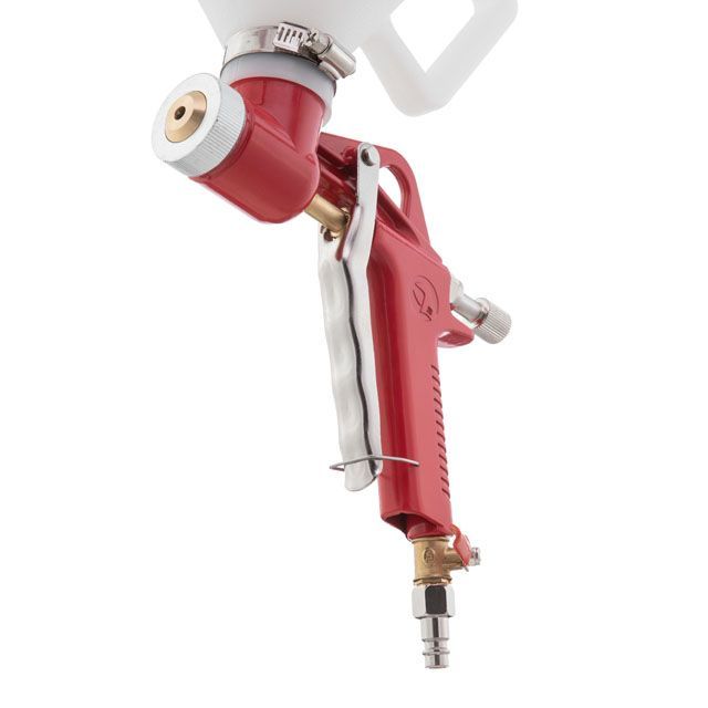Для эффективной работы необходим источник сжатого воздуха (компрессор), способный поддерживать в системе давление 6 атм, с производительностью 350 л/мин и больше. Шланг подачи воздуха должен иметь диаметр 8-10 мм. Для подключения к пневмосистеме на пистолете предусмотрен фитинг на ответную часть быстроразъемного соединения шланга.