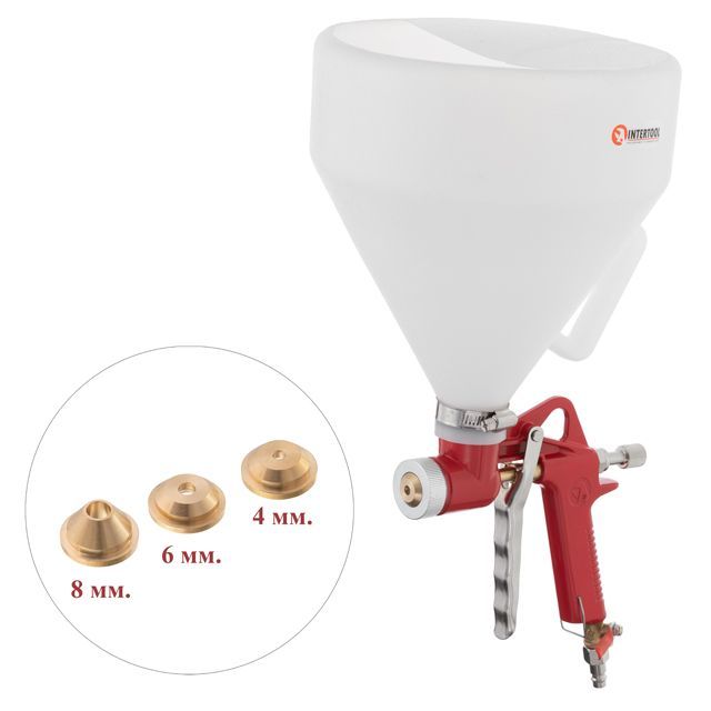 Распылитель штукатурный пневматический, форсунки: 4, 6, 8 мм, верхний пластиковый бачок, 7000 мл, 3-6 атм INTERTOOL PT-0402