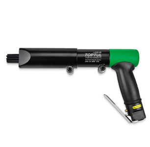 Пневматичний зачисний молоток TOPTUL KAHB3718 призначений для видалення іржі, накипу, задирок, фарби та шлаку з металевих поверхонь, зняття напружень після зварювання, а також очищення і надання шорсткості бетону. Його ефективність пояснюється незалежними ударами кожної загартованої сталевої голки, що дозволяє обробляти всі точки складних рельєфів.