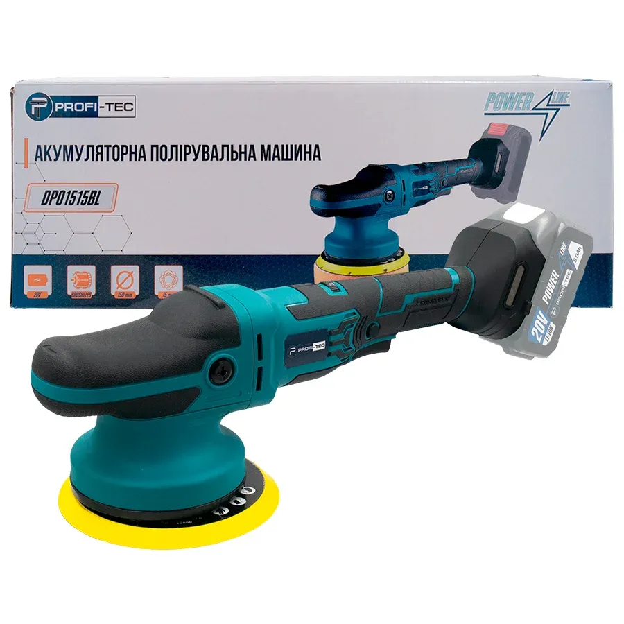 Акумуляторна ексцентрикова полірувальна машина PROFI-TEC DPO1515BL;