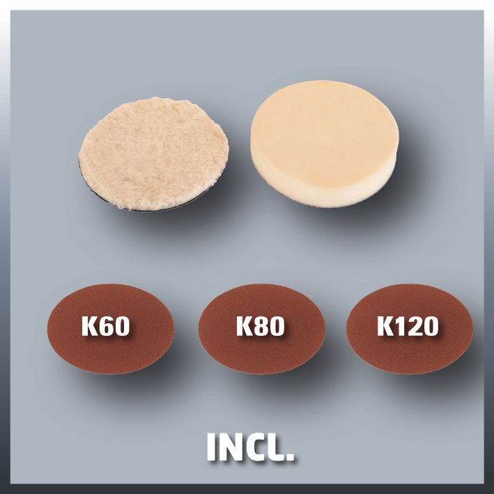 Електронне регулювання швидкості обертання Блокування шпинделя Швидка і легка зміна шліфувального шліфувального машини 1 зручним пристроєм для полірування лакованих поверхонь, а також шліфування деревини, пластмас та металу. Завдяки м'якій накладці на ручці цей пристрій можна зручно та безпечно використовувати при поліруванні легкових автомобілів. Для догляду за лаком велика додаткова ручка забезпечує найкращий контроль та точні результати. Завдяки точному електронному регулюванню швидкості, швидкість полірування або шліфування може бути налаштована і оптимально адаптована до поверхні, що обробляється. Завдяки практичному блокуванню шпинделя шпиндель може бути заблокований без допоміжних інструментів. Таким чином, шліфувальний диск на підошві можна швидко та легко міняти. Шліфувальний диск має спеціальну поверхню з липучкою для надійної фіксації полірувальних та шліфувальних насадок та запобігання попаданню пилу між диском та шліфувальним папером. Полірувальні та шліфувальні насадки можна легко та швидко змінити. У комплект поставки входять: 1 пінопластова насадка (для полірування автомобіля), 2 синтетичні полірувальні насадки та по 1 штуці шліфувальних паперових дисків зернистості 60, 80 та 120. Полірувально-шліфувальна машина CC-PO 1100/2 E поставляється в картонній коробці.