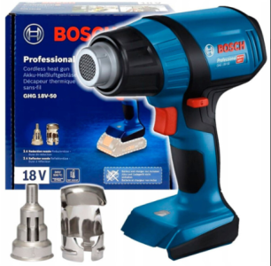 Акумуляторний технічний фен Bosch GHG 18B-50 Professional, без акб, з 2 насадками в картоні 06012A6500